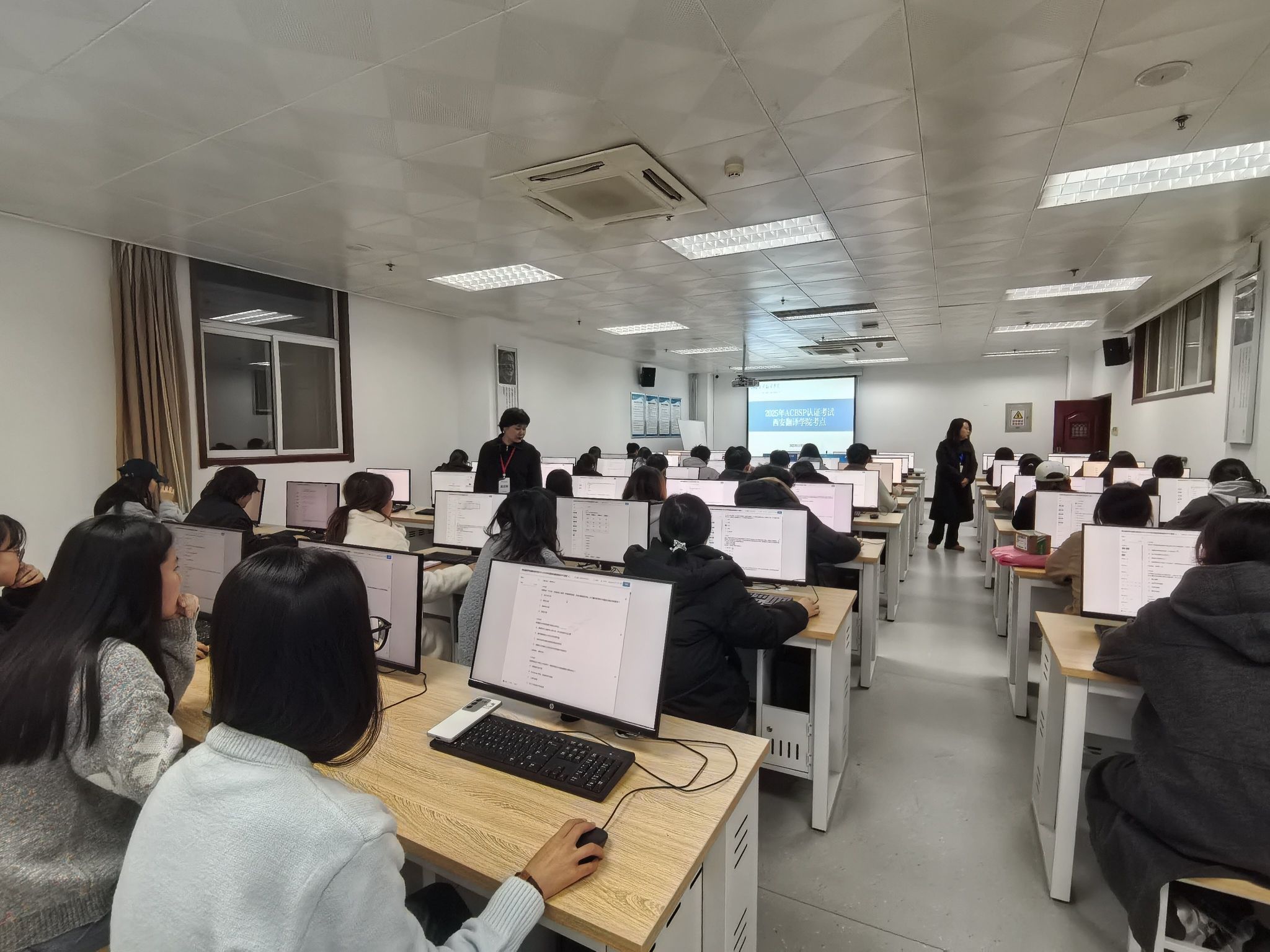 本次测试覆盖2022级至2024级国际经济与贸易、财务管理、审计学、旅游管理、人力资源管理5个本科专业的1200余名学生(不含专升本学生)。测试采用标准化在线考核形式,由学院统一统筹部署,分三场在14个机房有序开展,全程严格遵循 ACBSP 认证规范及学院考试管理要求,确保考核过程的公平、公正与高效。