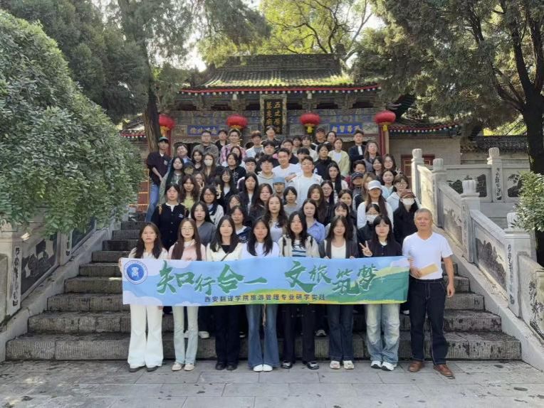 2025年10月15日至16日,国际商学院旅游管理专业22级本科和24级专升本90多名学生在何军、张斌达两位老师的带领下前往宝鸡市岐山县,围绕五丈原诸葛亮庙、周公庙等历史文化景区开展为期两天的专业实习活动。本次实习以“深化历史认知、提升服务实践”为主线,通过实地考察、场景模拟与专题研讨,切实推动理论与实践的深度融合。