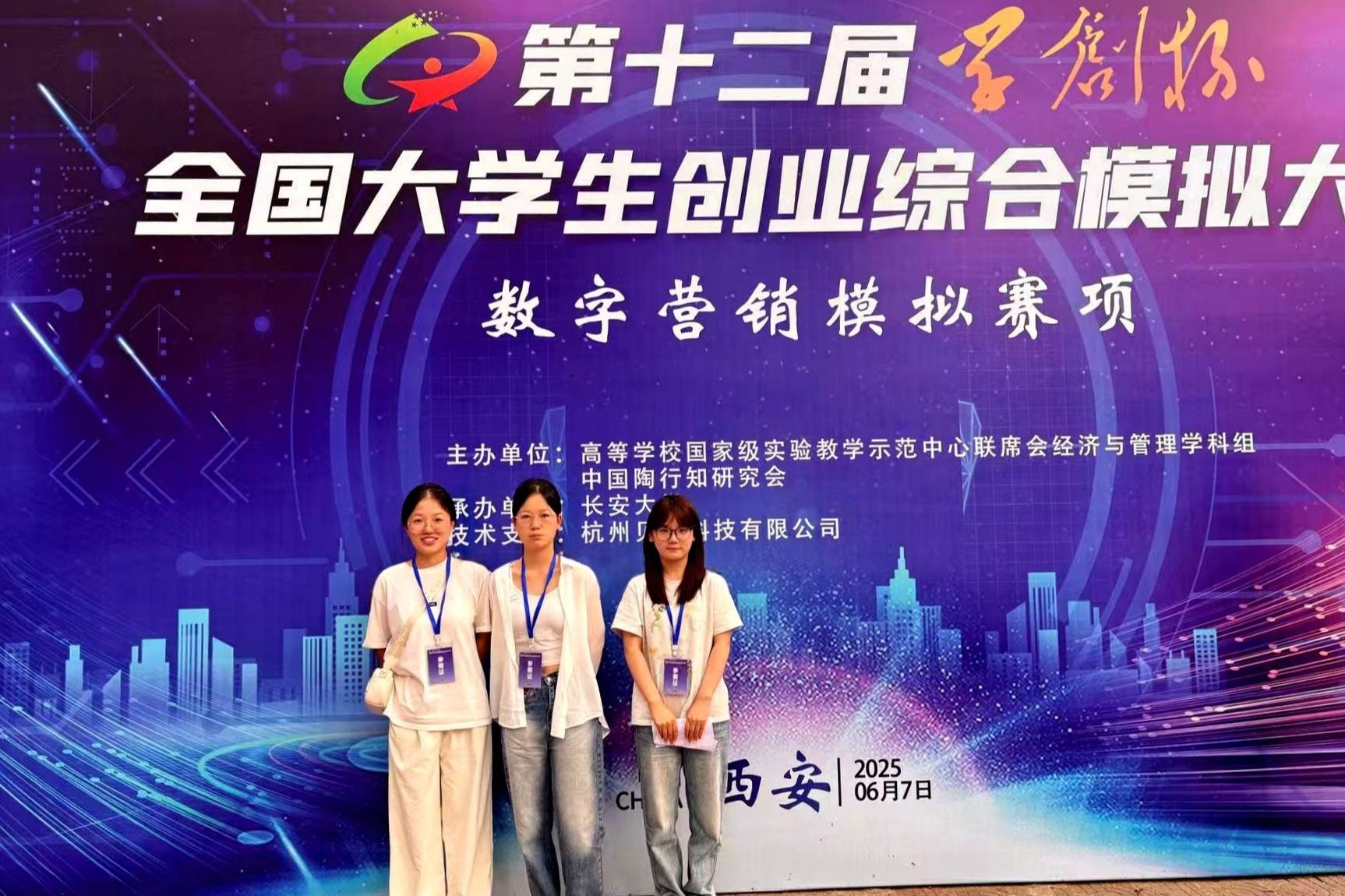 在第十二届“学创杯”全国大学生创业综合模拟大赛全国总决赛(高教组)的舞台上,国际商学院杜家妮、程思怡、陈洁莹三位同学组成的参赛团队,凭借创新的营销策略与高效的团队执行,在“数字营销模拟赛项”中脱颖而出,荣获全国一等奖。这一荣耀时刻,不仅为西译学子增添光彩,更彰显了学校创新创业教育的卓越成果,其背后是师生们无数日夜拼搏奋斗的动人故事。