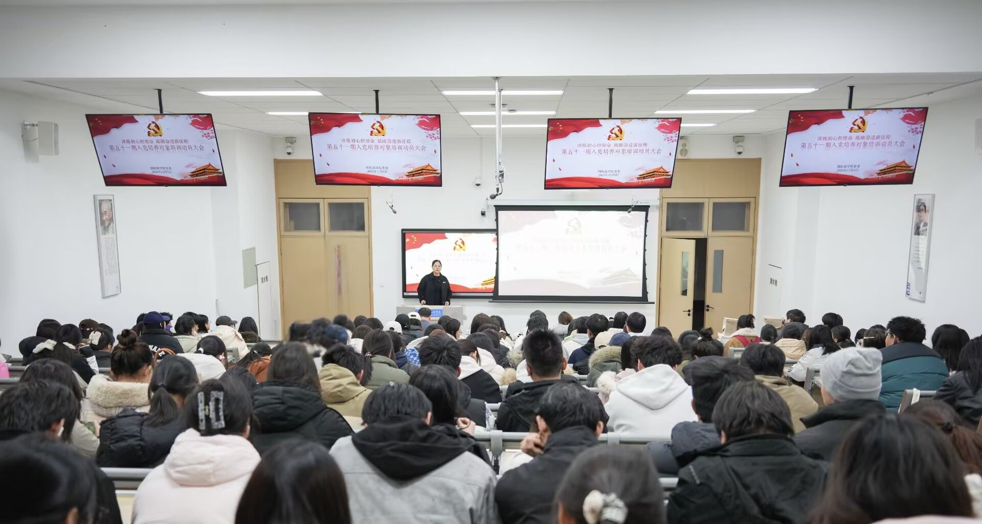 为深入贯彻落实《中国共产党发展党员工作细则》有关规定,严把党员发展“入口关”,夯实党员队伍建设基础。2025年12月4日,国际商学院党委隆重举行第五十一期入党培养对象培训动员大会。国际商学院党委组织入党培养对象共计162人参加此次培训。国际商学院党委书记康劭洋、第三党支部书记李瑞锋、第四党支部书记张卓出席会议。
