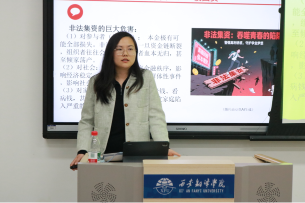 为警惕非法集资风险,抵制校园贷侵害,防范学子上当受骗。近日,国际商学院成功举办“‘贷’价青春——向校园贷说‘不’”金融知识讲座。活动特邀西部证券理财顾问张今馨主讲,国际商学院2024、2025级学生参加。