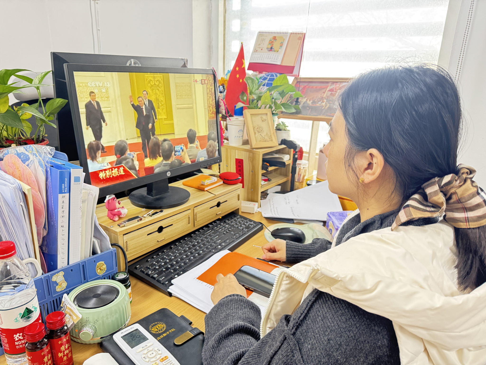 活动伊始,经济与管理学部团委书记闫斌作简短动员。明确学习两会精神的重要意义,强调青年群体要主动关注国家发展大局、勇担时代使命。随后组织全体成员进行集中观看开幕会直播盛况,观看期间,全体学生干部标注会议要点,梳理核心信息,现场学习氛围浓厚。团学干部们积极表态:“作为新时代青年,看到国家的强大,我们倍受鼓舞。未来我们将把个人成长融入国家发展,以实际行动践行青年担当。”