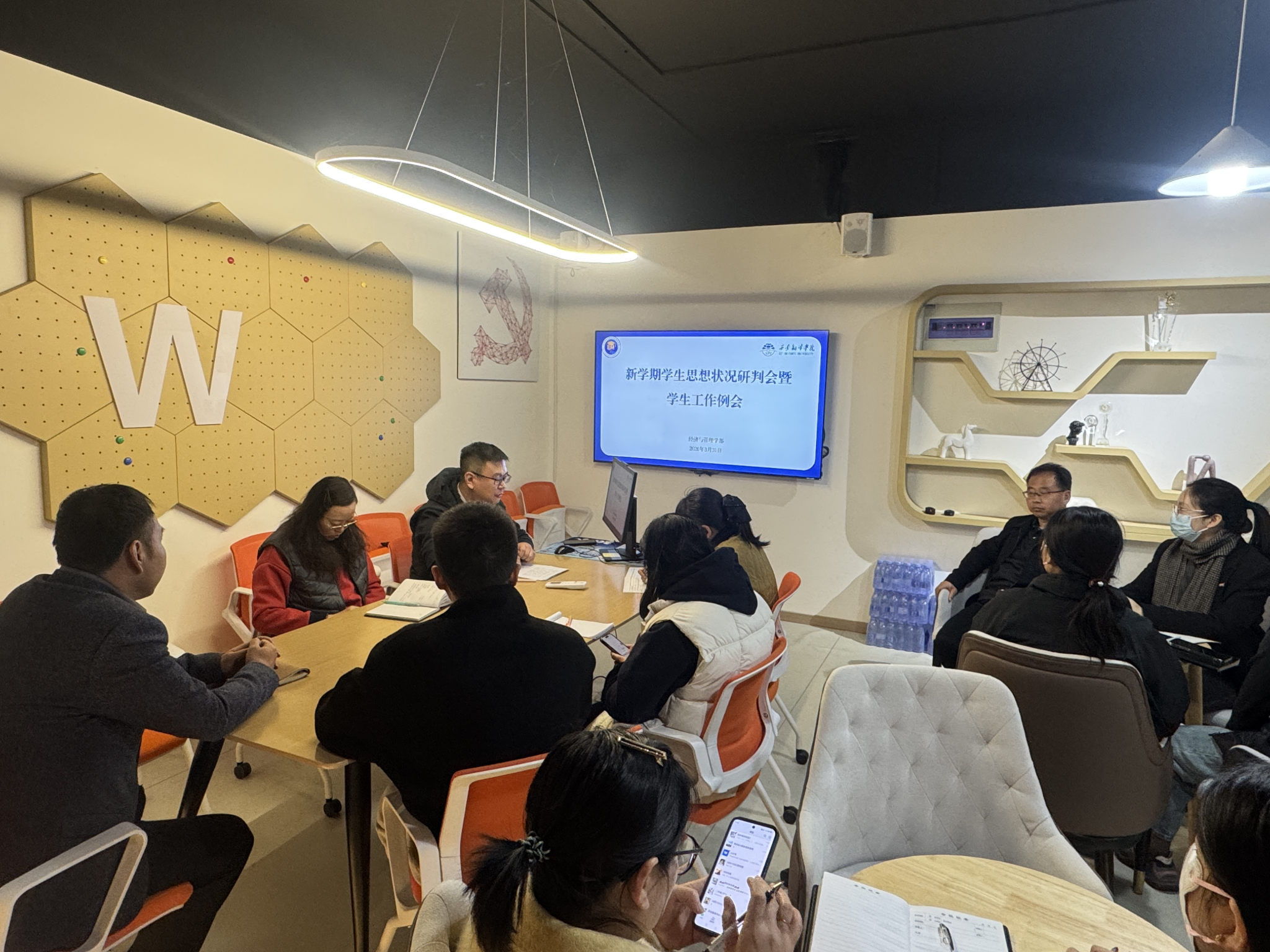 为深入贯彻学校办学理念,精准落实学生工作要求,总结近期成效、梳理现存问题、部署后续任务,切实提升学部学生工作质量,3月31日,经济与管理学部在创咖召开学生工作专题会议。综合办副主任胡松武主持会议,学部副部长康劭洋及学部全体辅导员参会,凝聚育人共识,明确工作方向。
